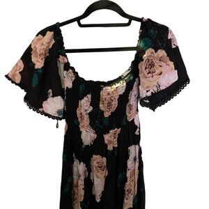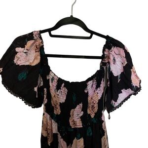 NWT Lulus Primrose Princess Black Floral Print Off-the-Shoulder Maxi Dress