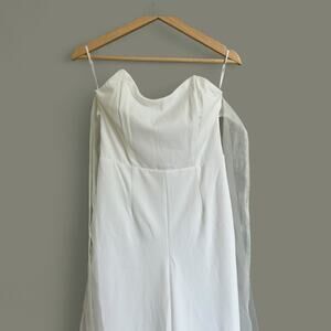 NWT Lulus Pristine Aura White Tie-Strap Off the Shoulder Jumpsuit size Small