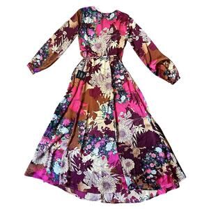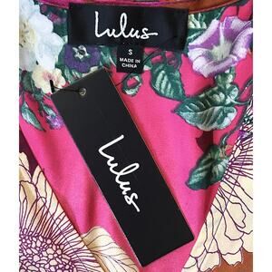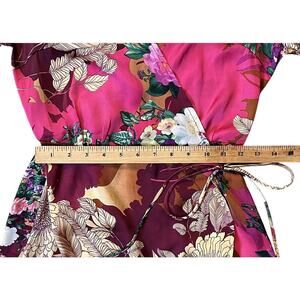 NWT Lulus Put on a Smile Burgundy Floral Print Satin Full Wrap Maxi Dress Small