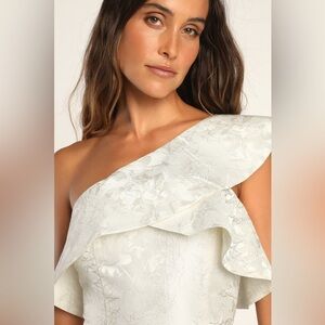 NWT Lulus Radiantly Romantic Ivory Off White Floral Jacquard One-Shoulder Romper size M