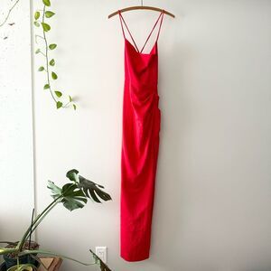 NWT Lulus Romantic Thoughts Red Cowl Neck Lace-Up Maxi Dress L