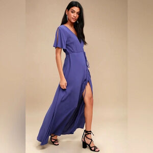 ✨NWT Lulus Royal Blue Much Obliged High Low Wrap Maxi Dress Size Small