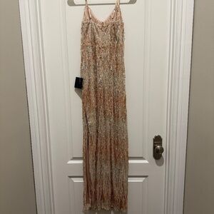 NWT Lulus Sashi Gold Sequin Fringe Maxi Dress