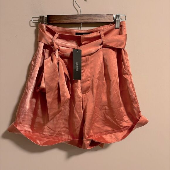 NWT Lulu’s Satin Paperbag High Waisted Belt Shorts- Size Small