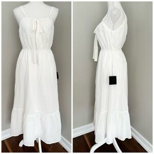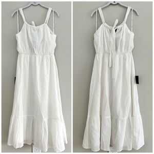 NEW Lulu’s White Flowy Cotton Midi Dress Tie Front Sleeveless Sundress Size M NWT