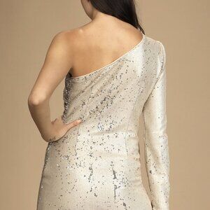 NWT Lulus Shimmer Beauty Light Nude Sequin One-Shoulder Bodycon Mini Dress