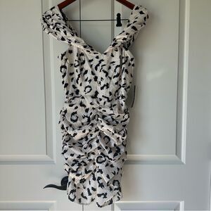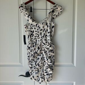 NWT Lulus Size M White and Black Leopard Print Off the Shoulder Bodycon Dress