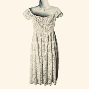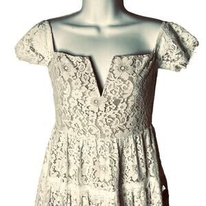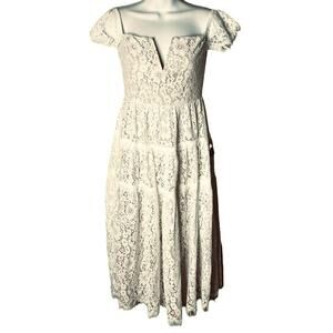 NWT Lulu's Size XS Midi Dress Nude Lining Tiered Floral Lace Off Shoulder Prom