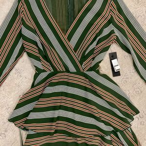 New With Tags - Dark green striped zipper back dress with bell sleeves.