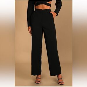 NWT Lulus So Get This Black High-Waisted Wide-Leg Trouser Pants Size L
