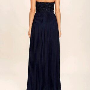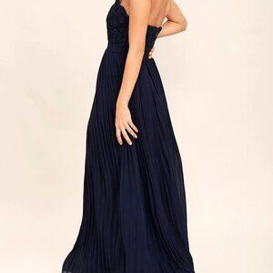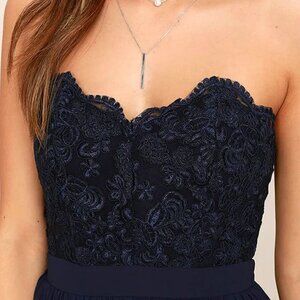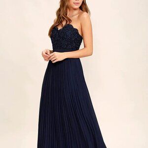 NWT Lulus Special Day Navy Blue Lace Strapless Maxi Dress size XS