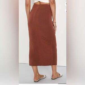 NWT Lulus Status Brown Knot-Front V-Waist Midi Skirt Size M