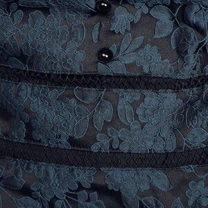 Spice up your party look with the Lulus Surprise Me Teal Blue and Black Jacquard Ruffled Mini Dress! Sleek teal blue and black floral print jacquard creates a V-neckline and flirty ruffled cap sleeves. Fitted bodice features pierced embroidery and a cute decorative button placket as it leads into a ruffled A-line mini skirt with more pierced embroidery. V-back with hidden zipper/clasp.