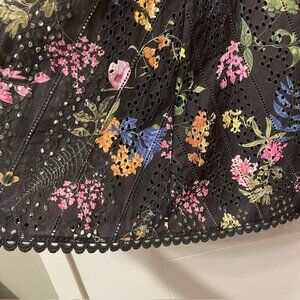 NWT Lulus Sweet At Heart Floral Embroidered Midi Skirt Black Small Eyelet