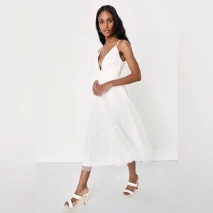 NWT Lulus Sweet Goddess White Mesh Pleated Sleeveless Midi Dress