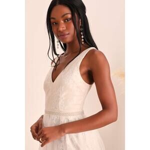 NWT Lulus Sweet Love Ivory Lace Beaded Maxi Dress Medium