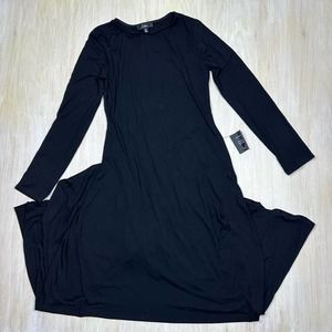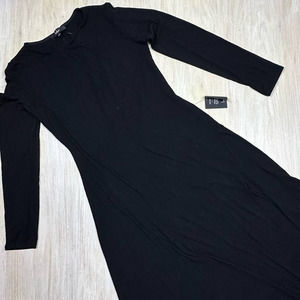 NWT Lulu's Swept Away Black Long Sleeve Jersey Knit Side Slit Maxi Dress Size XL