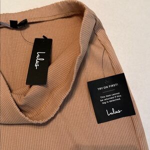 NWT Lulus Tan Bodycon Ribbed Side Slit Skirt Size M