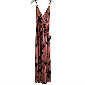 NWT Lulu's Tea Gardens Rusty Rose Floral Print Satin Maxi Dress Medium