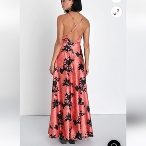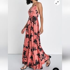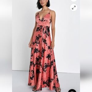 NWT Lulu's Tea Gardens Rusty Rose Floral Print Satin Maxi Dress