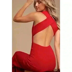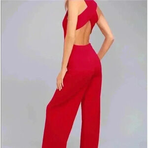 NWT Lulus Thinking Out Loud Red Backless Jumpsuit Size S