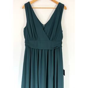 NWT Lulus Thoughts of Hue Emerald Green Surplice Maxi Dress Size XL Chiffon Slit
