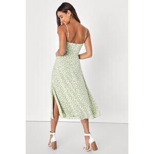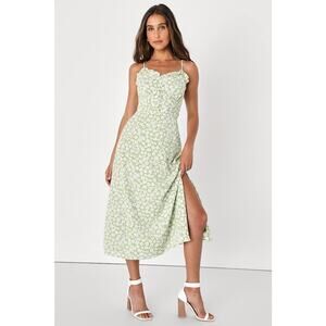 For the ultimate chic choice, choose the Lulus X LUSH Timeless Touch Green Floral Print A-Line Midi Dress! Light and breezy, green and white ditsy floral print woven fabric adds retro appeal to this classic sundress with adjustable skinny straps, a ruffle-trimmed neckline, and a button-front bodice with a ruched, set-in waist. A-line midi skirt finishes off this closet essential. Hidden back zipper/clasp.