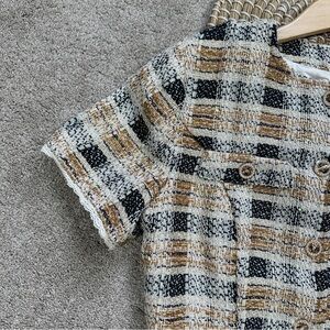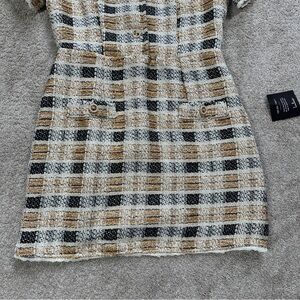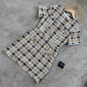 NWT Lulus Uniquely Posh Beige Tweed Sequin Lurex Short Sleeve Mini Dress Size L