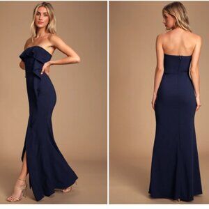 NWT Lulu's Valerie Navy Blue Ruffled Strapless Maxi Dress Size Medium