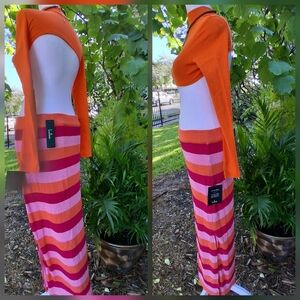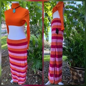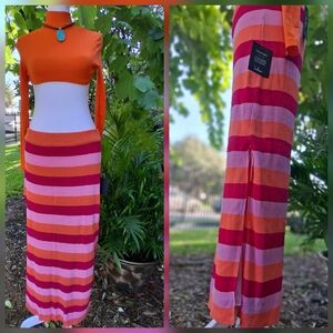 🔥NWT Lulu's Vibrant STRIPED Knit Maxi SKIRT XL & FREE GIFT