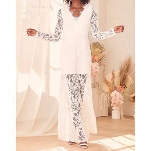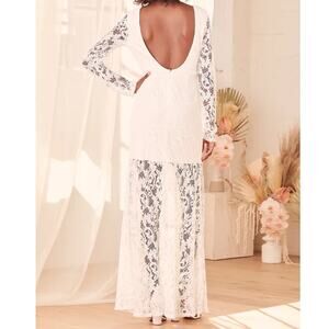 NWT Lulus Way to Be Loved White Lace Long Sleeve Maxi Dress