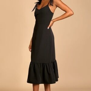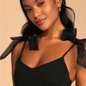 NWT Lulus What a Gift Black Bow Strap Midi Dress