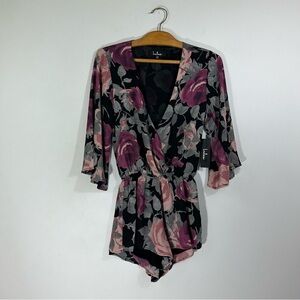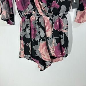 NWT Lulu’s What's Bloomin' Black Floral Print Romper