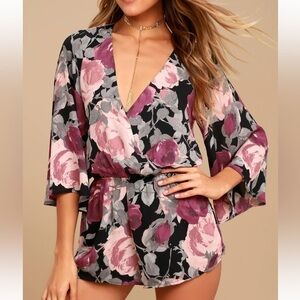 NWT Lulu’s What's Bloomin' Black Floral Print Romper
