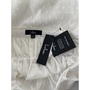 NWT Lulus White Swiss Dot Babydoll Mini Dress Women’s Small