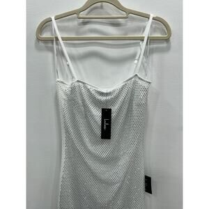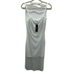 NWT Lulus Womens Rhinestone Bodycon Dress Sleeveless Mesh Cocktail White Size S