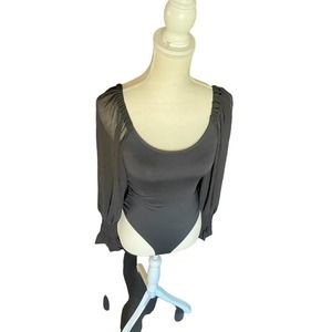 NWT Lulus Womens Scoop Neck High Cut Bodysuit Top Chiffon Long Sleeve Size XS
