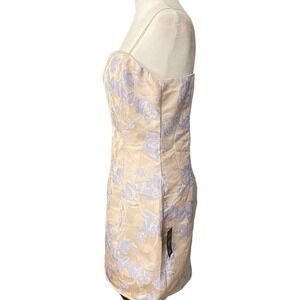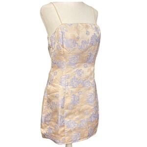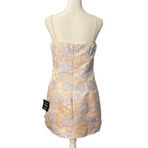 NWT Lulus Womens Sheath Dress Floral Lined Classic Backless Tan Blue Size Medium