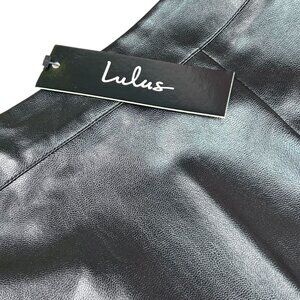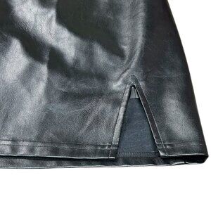 NWT Lulu’s Women's Small Black Faux Leather Mini Skirt Slit Detail