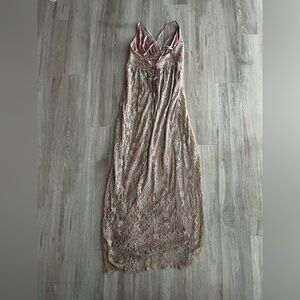 NWT Lulus Women’s Stolen Moments Dusty Pink Lace-Up Lace Maxi Dress - Medium