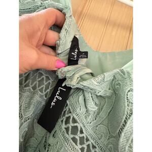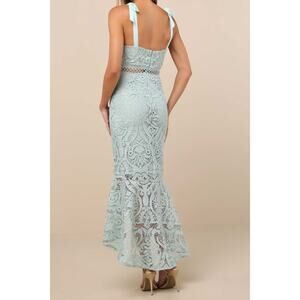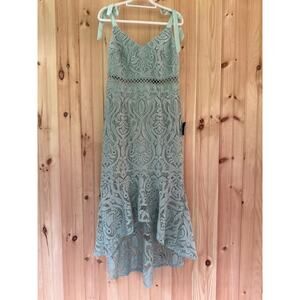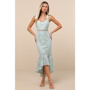 NWT Lulus Won Your Heart Sage Green Lace Tie-Strap High-Low Midi Dress Size L