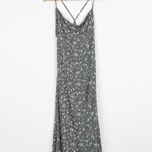NWT Lulus Would Be Love Olive Green Floral Print Maxi Slip Dress (sz SM)