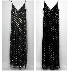 NWT Lulus XL Galaxy Lights Black and Gold Polka Dot Sleeveless Maxi Dress