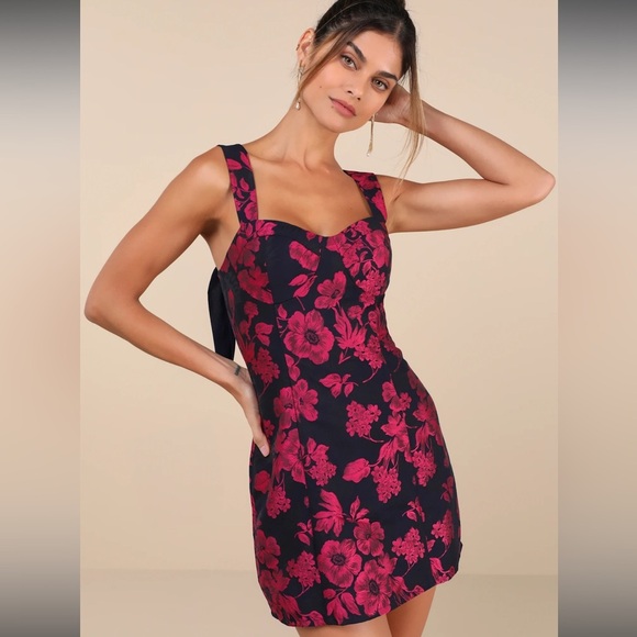 NWT Lulu's navy and pink Floral Mini Dress tie straps size small