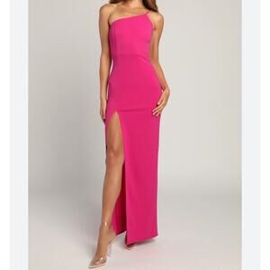 New with tags Lulu’s size small bright pink one shoulder maxi dress. Large slit in the side front. Measures 13 1/2” from armpit to armpit. 12 1/2” across the waist and it is 62” long. Lots of stretch.