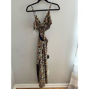 NWT Lulus It's a Perfect Pick Navy Blue Floral Print Cutout Maxi Dress Women’s L