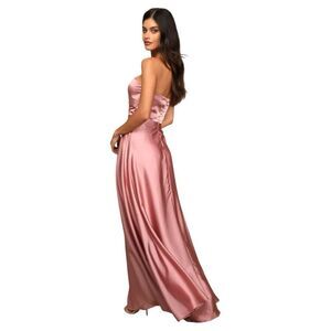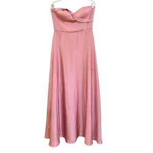 NWT Lulus Real Romantic Light Rose Satin Strapless Maxi Dress Size L
