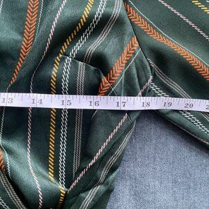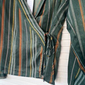 NWT Lumiere Satin Wrap V-Neck Top, Green Rust Yellow White Striped, Size S