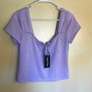 NWT Luna Moon Lila square neck, lilac purple, short sleeve, size XL crop top, cap sleeve