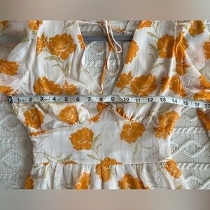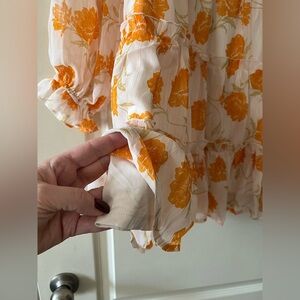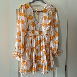 NWT Brand new! Gorgeous & girly poly dress by LUSH!! Known for amazing dresses for women! Orange & white floral. Long sleeves, sheer. Elastic cuffs & waistline. Lots of stretch! Dress is LINED! Summer or Spring. Measurements in photos. Open back with straps that tie. Women’s size small. Smoke free home
